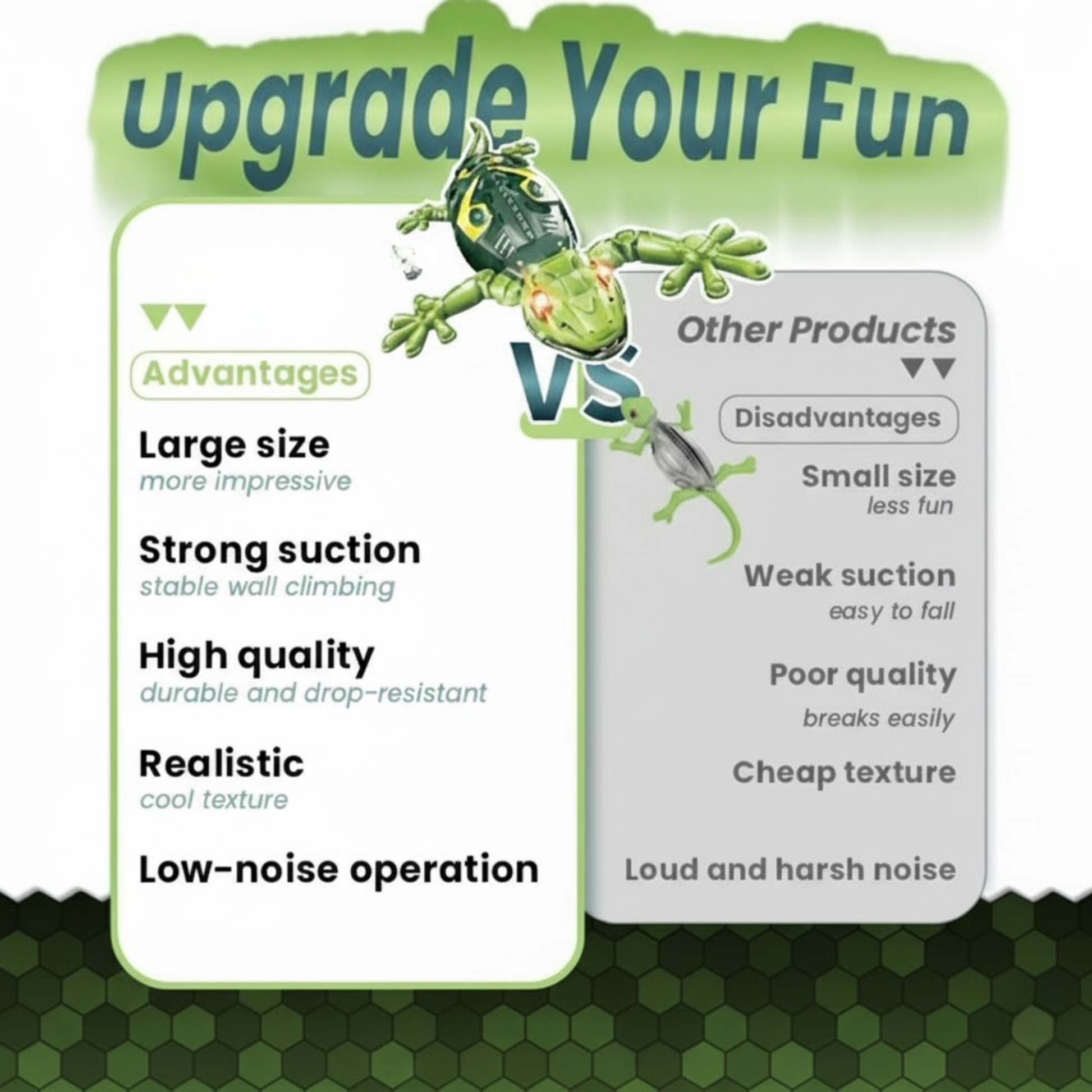 The gecko toy features a rechargeable battery that lasts up to 3 hours on a single charge. Simply charge it up and enjoy extended playtime with continuous crawling action across walls, ceilings, and floors.